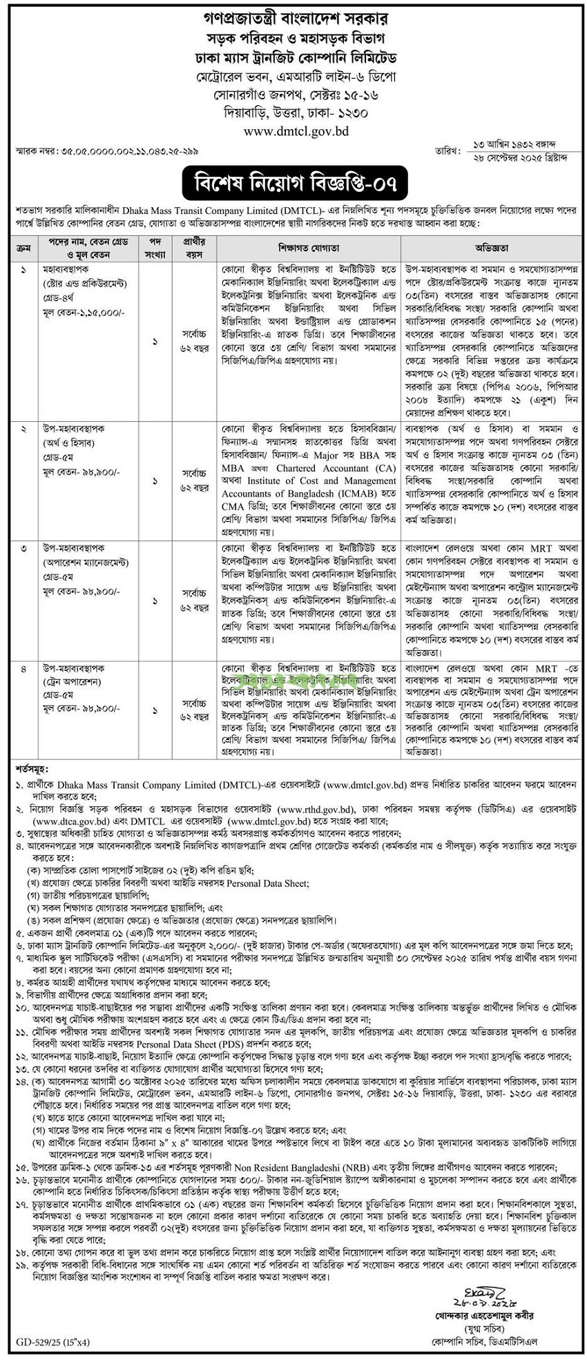 ১. প্রার্থকে Dhaka Miss Transit Company Limited (DMTCL)-এর ওয়েবসাইটে (www.dintzl.gov.bd) প্রদত্ত নির্ধারিত চাকরির আবেদন ফরমে আবেদন দাখিল করতে হলে